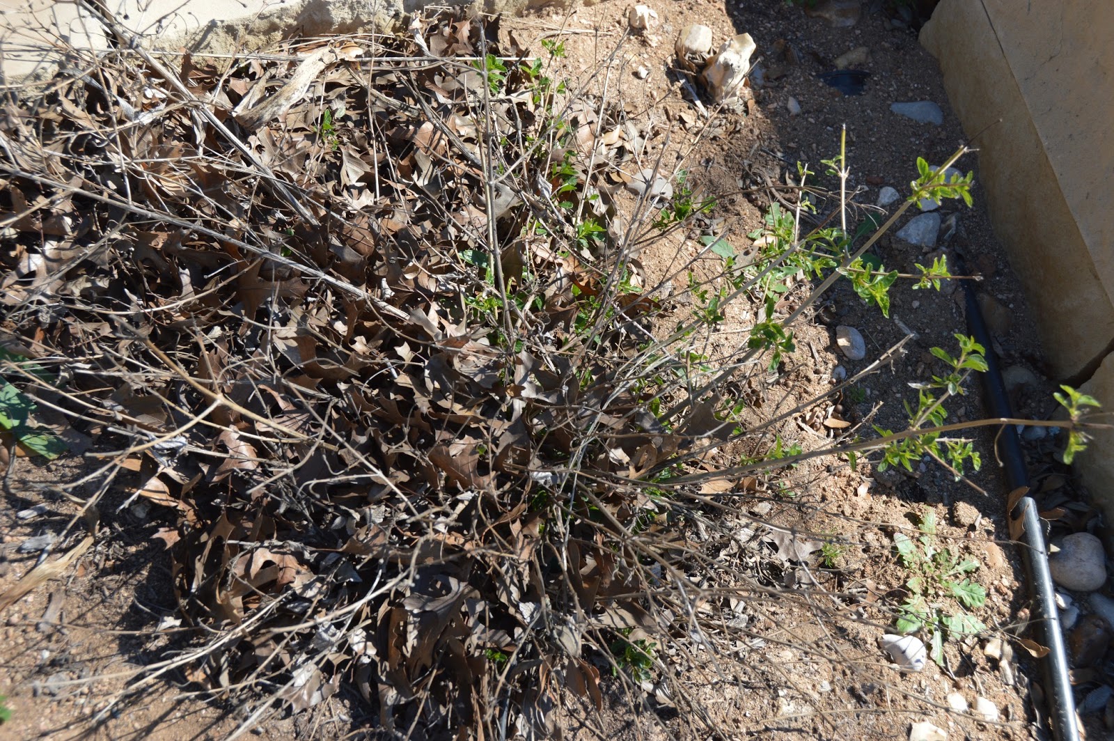 Things I need to remember for next year’s winter. Cover the Esperanzas and the Plumbago. They both got a bit too much freeze damage. Luckily they are both coming back. The crowns are alive but the branches got too much freezing temperature. I also had a small problem with the iris’ that Leena, my neighbor, gave me. The iris’ look like they are growing. But for some reason the deer keep trying to eat and pull up one poor iris. I don’t know why. I keep replanting it, and they keep pulling it up. I’m going to move it to the back and put it in a pot and see how it does. But overall the irises look good, like they are alive and growing.