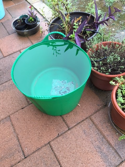 That pail was empty before we started with the rain. And this picture was taken just the other day. So we’ve had enough rain to fill the entire bucket.