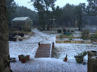 Since SO is doing so well our friend/helper has been helping we in the garden. We trimmed the fruit trees, trying to root some of the cuttings, planted seeds that are already sprouting, set up a new strawberry bed so we now have two strawberry beds and of course added more strawberry plants, and are getting the garden beds ready for planting. A few plants have been moved around. We have two artichoke plants that now are not so close to each other. This will give them room to grow. We moved the sorrel since it hasn’t died and appears to be a permanent plant. Planted some potatoes, multicolored ones in some pots.