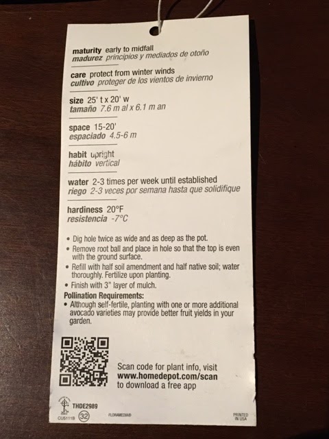 The other tree is a Avocado, Lila. She is hardy to 20 F, and self fertile, though someday we may want to plant a mate to her. This plant says you may get better yield with additional avocado varieties around it. Let’s hope she likes where ever her new home becomes.